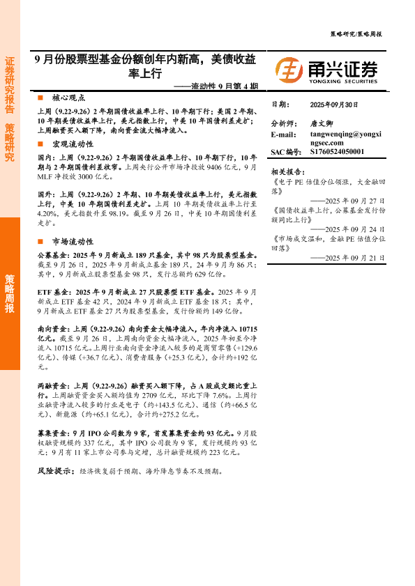 【甬兴证券】【202509】9月份股票型基金份额创年内新高,美债收益率上行-10页