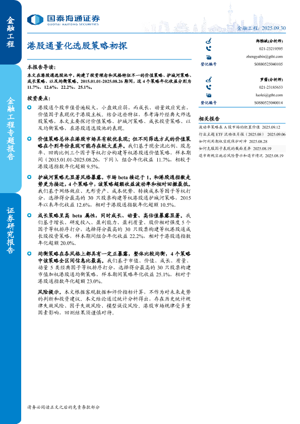 【国泰海通证券】【202509】港股通量化选股策略初探-13页