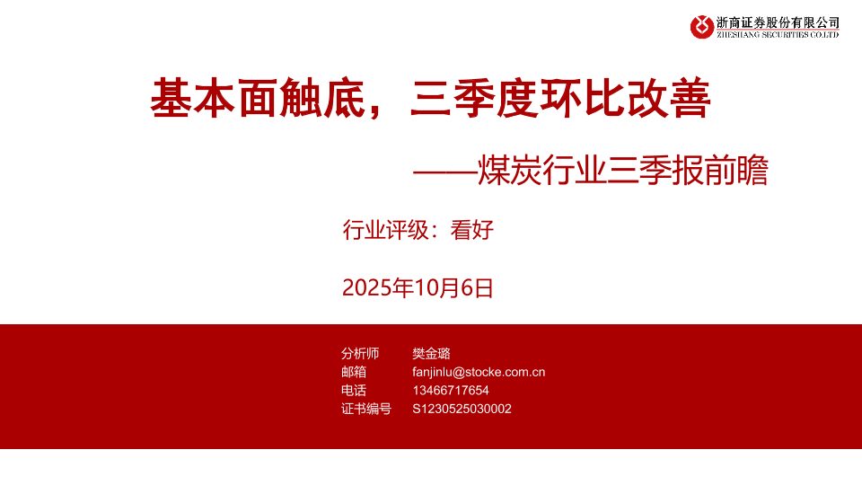 【浙商证券】【202510】煤炭行业三季报前瞻:基本面触底,三季度环比改善-18页