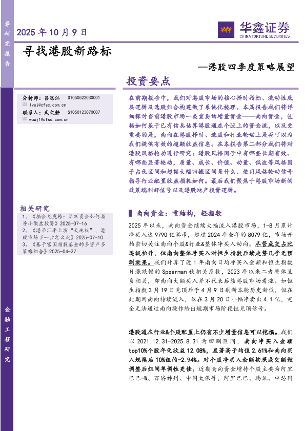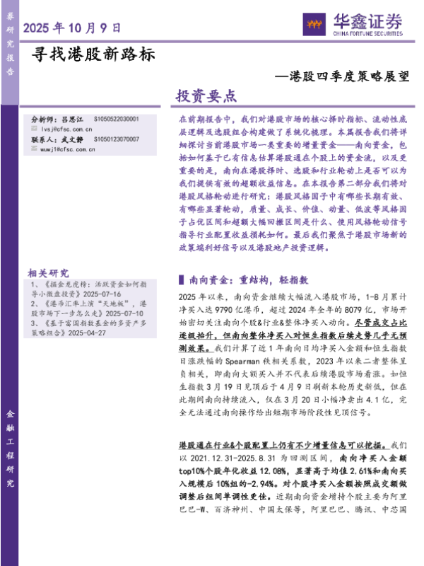 【华鑫证券】【202510】港股四季度策略展望:寻找港股新路标-26页