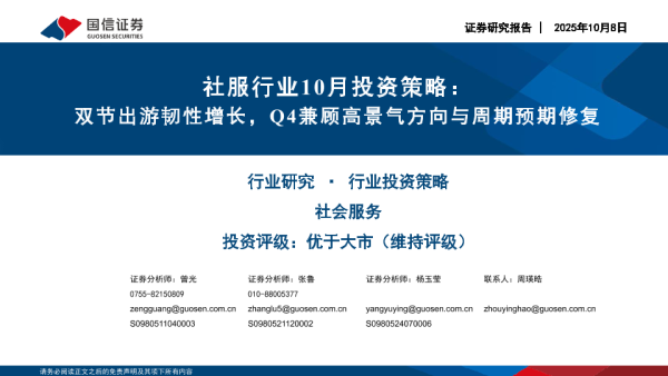 【国信证券】【202510】社服行业10月投资策略:双节出游韧性增长,Q4兼顾高景气方向与周期预期修复-23页