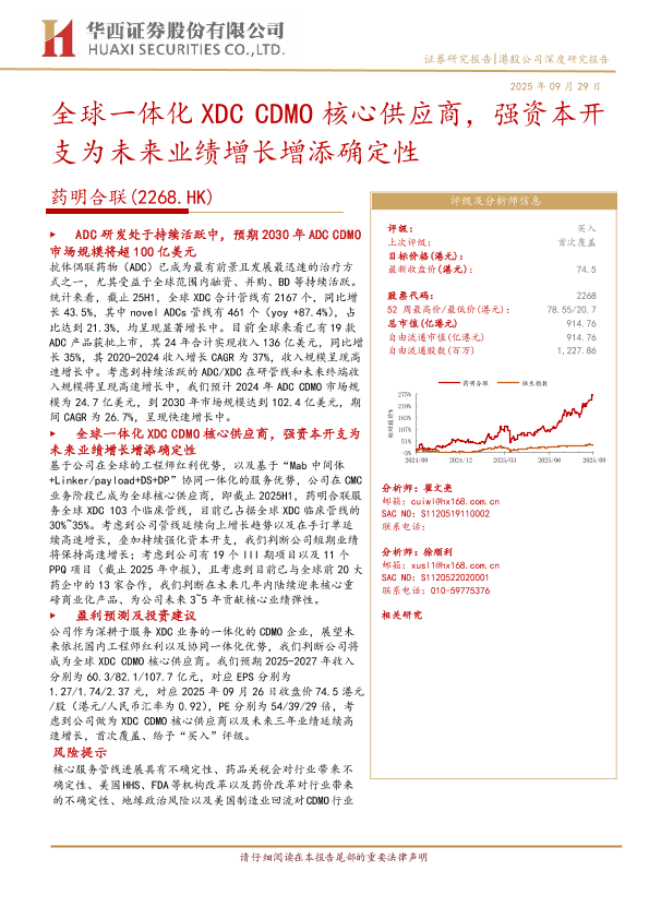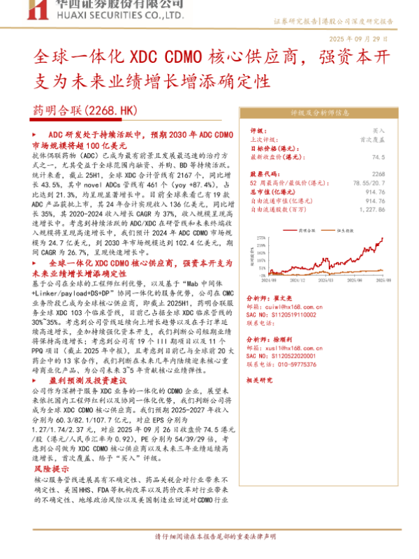 【华西证券】【202509】全球一体化 XDC CDMO核心供应商,强资本开支为未来业绩增长增添确定性-26页