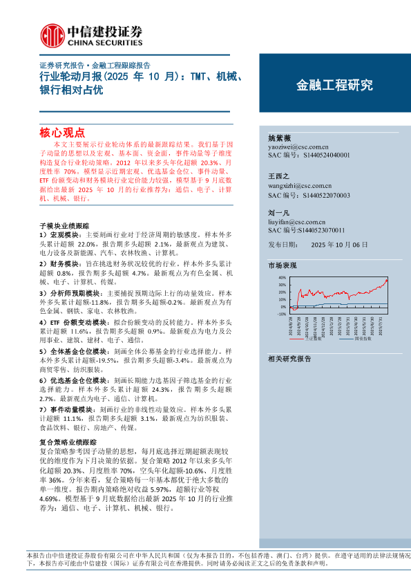 【中信建投证券】【202510】行业轮动月报(2025年10月):TMT、机械、银行相对占优-14页