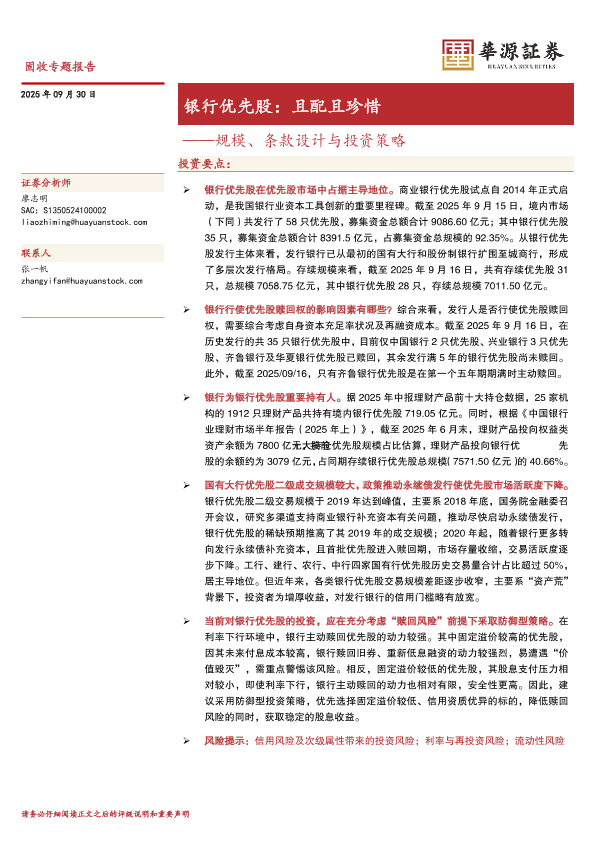 【华源证券】【202509】银行优先股:且配且珍惜——规模、条款设计与投资策略-17页