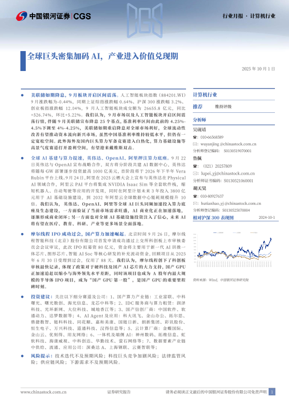英伟达 人工智能 摩尔线程 IPO 算力基础设施