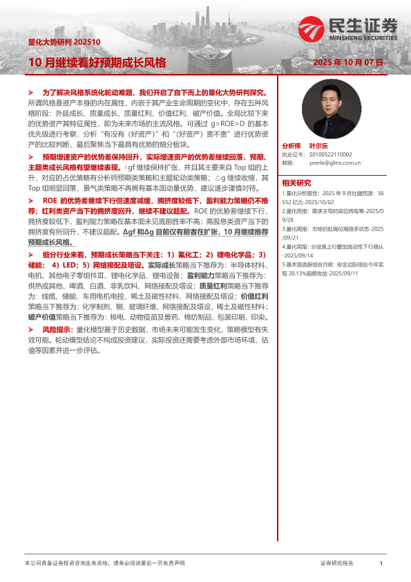 【民生证券】【202510】量化大势研判:10月继续看好预期成长风格-19页