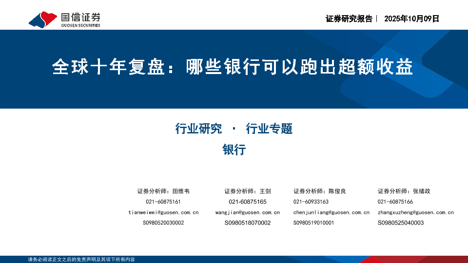 【国信证券】【202510】全球十年复盘:哪些银行可以跑出超额收益-38页