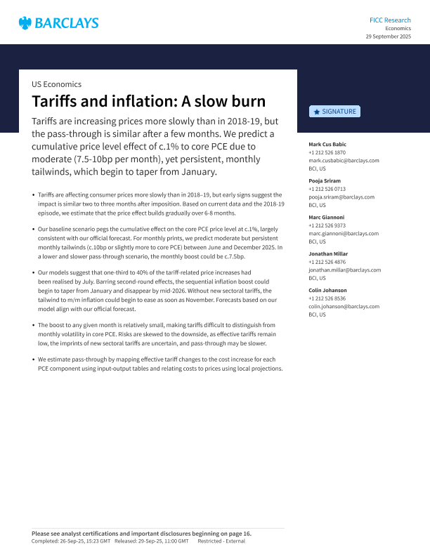 【Barclays】【2025】Tariffs and inflation A slow burn-19页