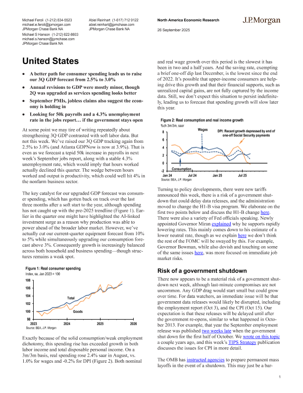 【J.P. Morgan】【202509】A better path for consumer spending leads us to raise our 3Q GDP forecast from 2.5% to 3.0%-17页