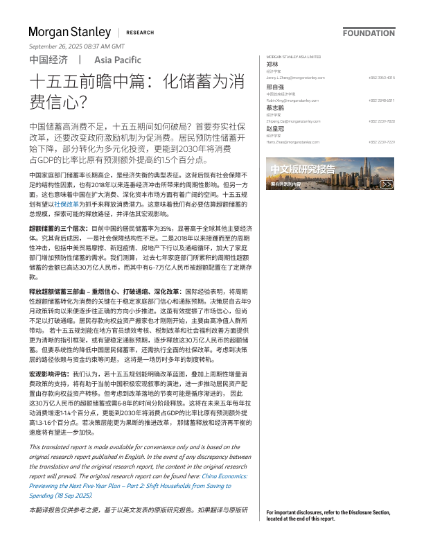 【Morgan Stanley】【202509】十五五前瞻中篇 化储蓄为消费信心?-28页
