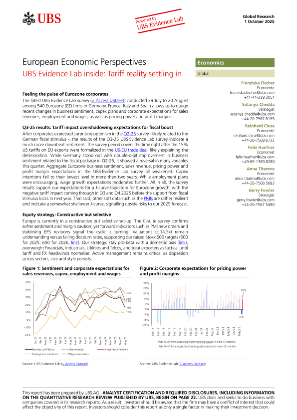 【UBS】【2025】European Economic Perspectives_UBS Evidence Lab inside Tariff reality settling in-27页
