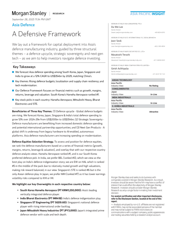 【Morgan Stanley】【2025】Asia Defence A Defensive Framework-33页