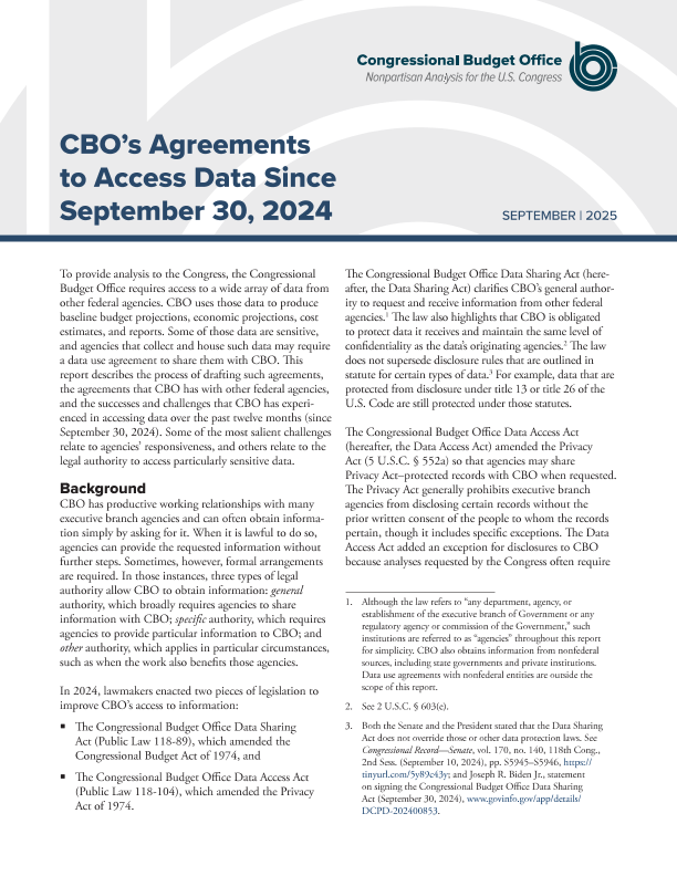 【Congressional Budget Office】【202509】CBO’s Agreements to Access Data Since September 30, 2024-9页