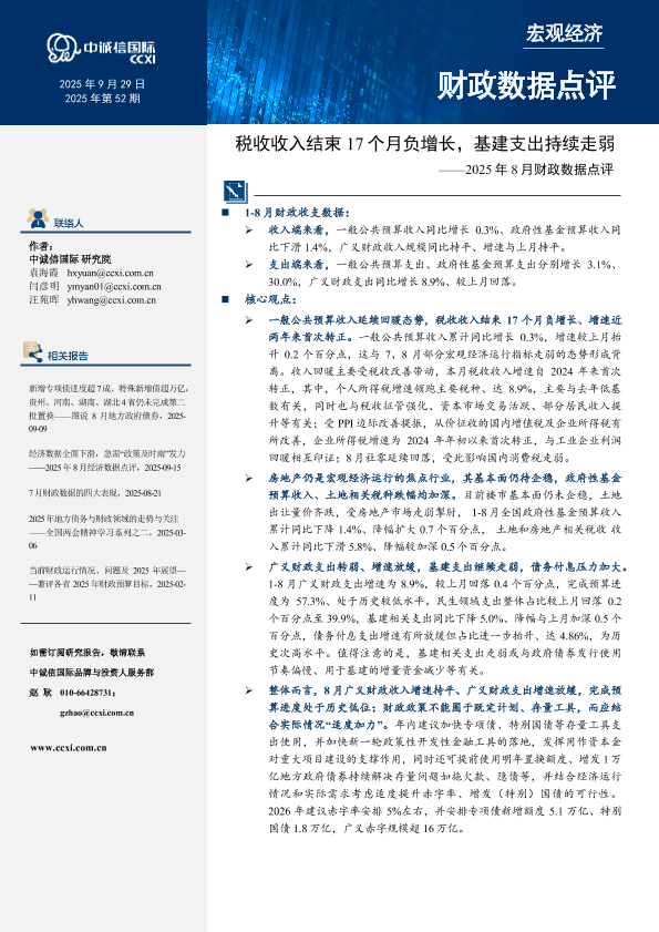【中诚信国际】【202509】经济数据全面下滑,急需“政策及时雨”发力——2025年 8月经济数据点评-7页