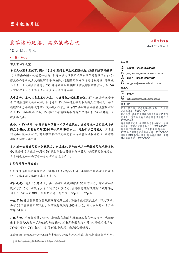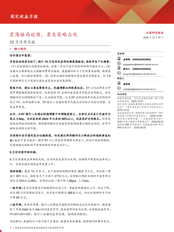 【西部证券】【202510】10月信用月报:震荡格局延续,票息策略占优-20页