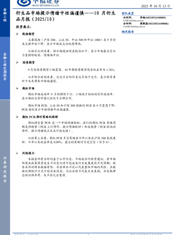 【华福证券】【202510】衍生品市场提示情绪中性偏谨慎——10月衍生品月报(2025/10)-16页