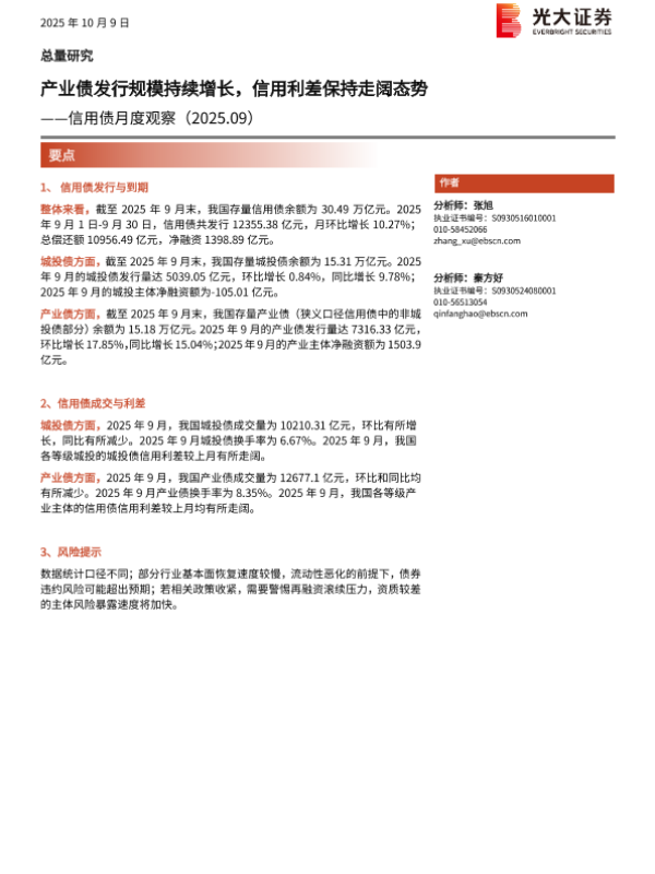 【光大证券】【202510】信用债月度观察(2025.09)-15页
