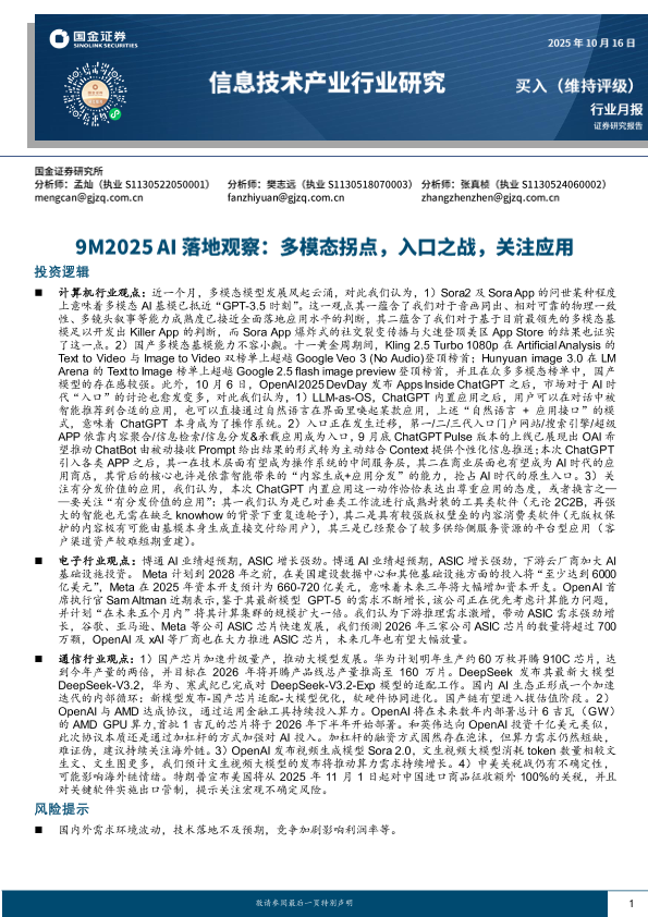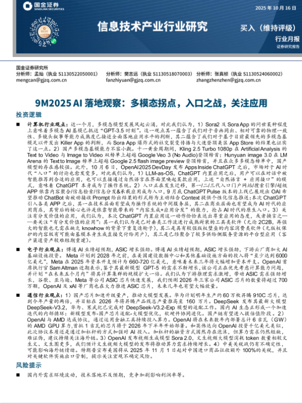 【国金证券】【202510】信息技术产业行业月报:9M2025+AI落地观察,多模态拐点,入口之战,关注应用-20页
