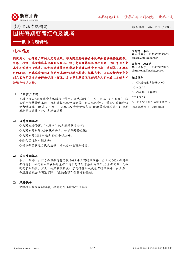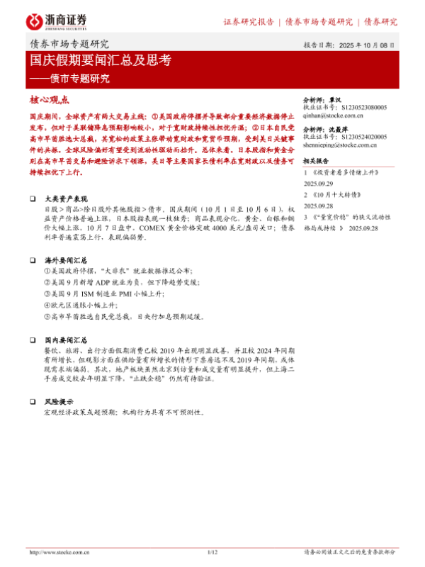 【浙商证券】【202510】债市专题研究:国庆假期要闻汇总及思考-12页