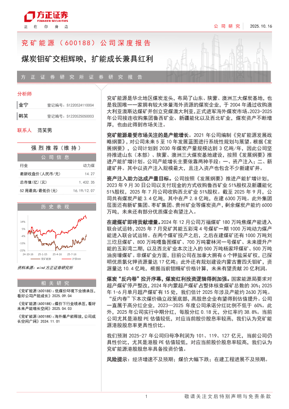 【方正证券】【202510】兖矿能源(600188):煤炭钼矿交相辉映,扩能成长兼具红利-22页
