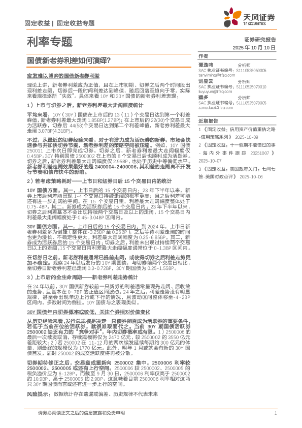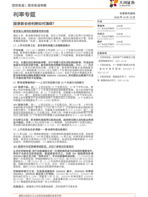 【天风证券】【202510】利率专题:国债新老券利差如何演绎?-10页