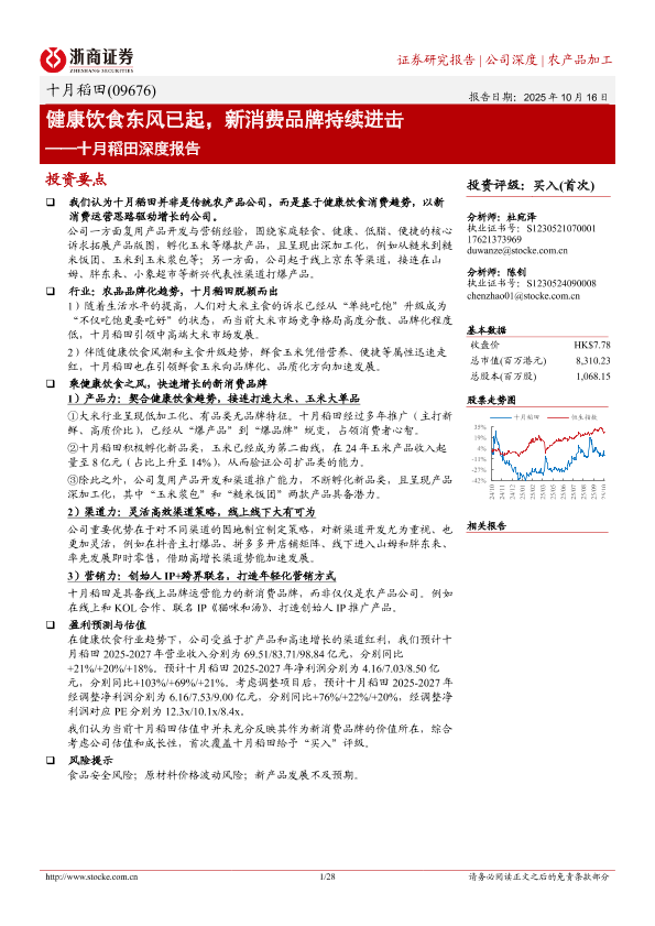 【浙商证券】【202510】健康饮食东风已起,新消费品牌持续进击——十月稻田深度报告-28页