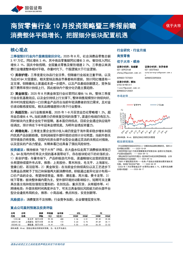 【国信证券】【202510】商贸零售行业10月投资策略暨三季报前瞻:消费整体平稳增长,把握细分板块配置机遇-12页