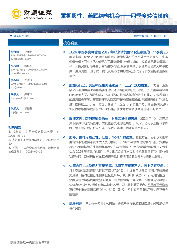 【财通证券】【202510】重视股性,兼顾结构机会——四季度转债策略-16页