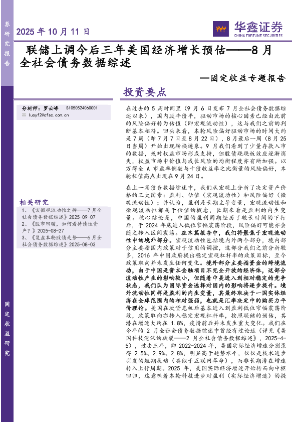 【华鑫证券】【202510】联储上调今后三年美国经济增长预估——8月全社会债务数据综述-15页