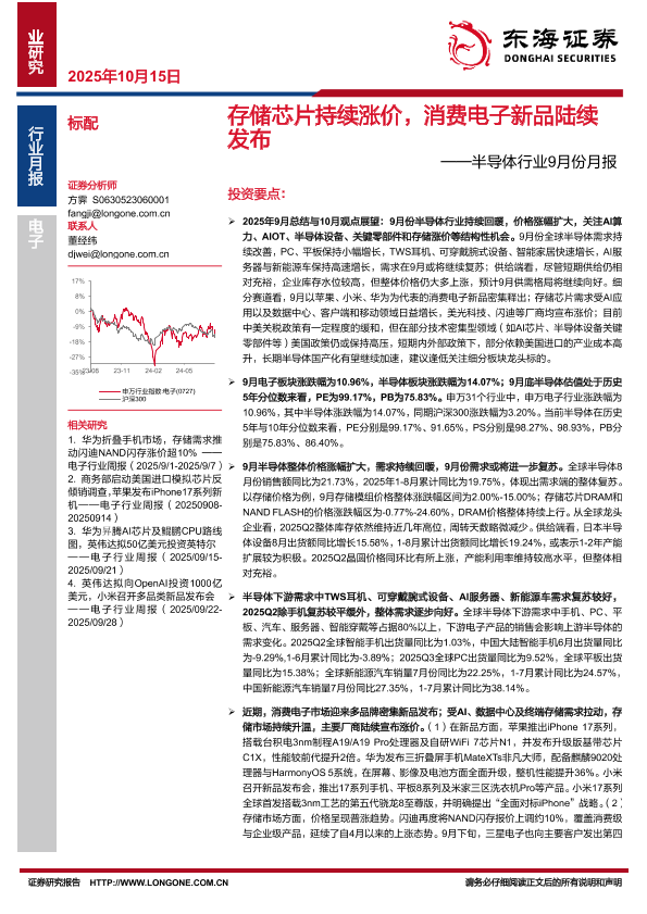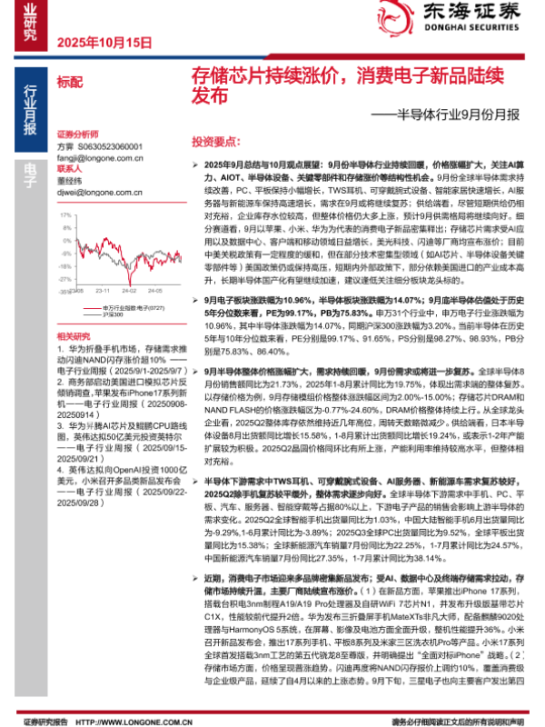 【东海证券】【202510】存储芯片持续涨价,消费电子新品陆续发布-29页