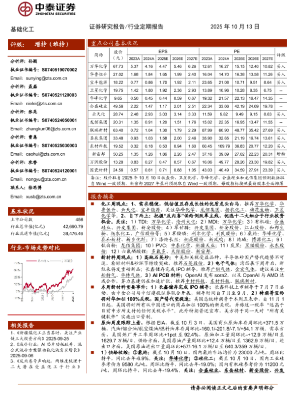 【中泰证券】【202510】基础化工行业:国产储存链替代加速,关注加关税受益品种-28页