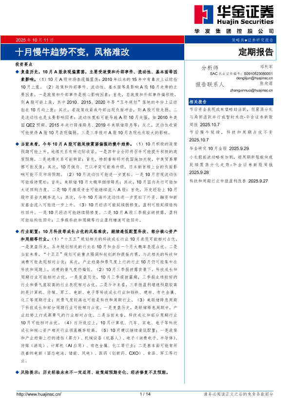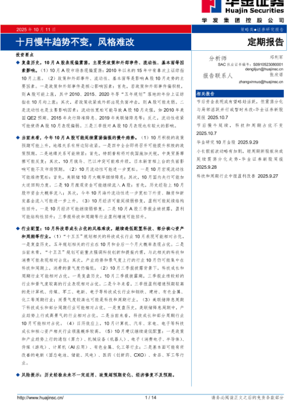 【华金证券】【202510】十月慢牛趋势不变,风格难改-14页