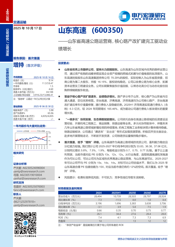 【申万宏源】【202510】山东省高速公路运营商,核心路产改扩建完工驱动业绩增长-21页