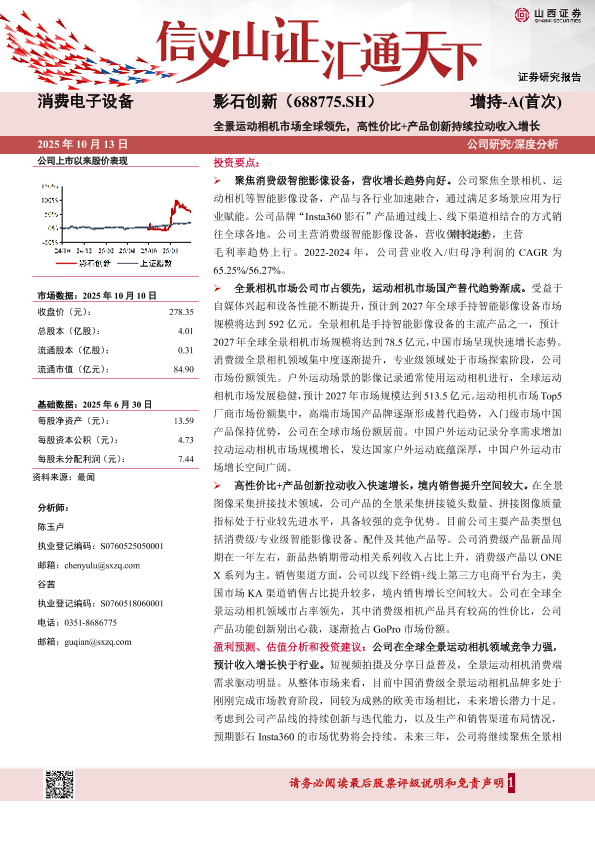 【山西证券】【202510】影石创新(688775)全景运动相机市场全球领先,高性价比+产品创新持续拉动收入增长-38页