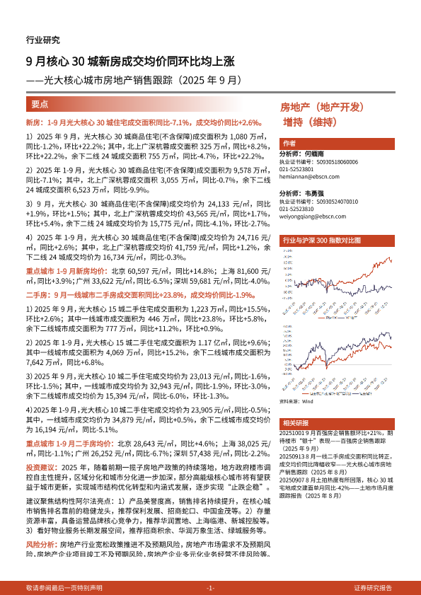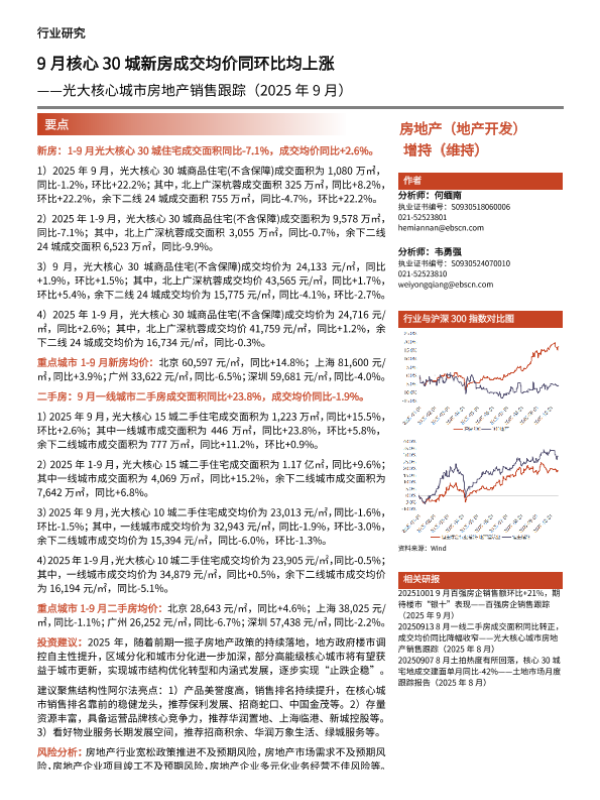 【光大证券】【202509】房地产行业核心城市房地产销售跟踪(2025年9月):9月核心30城新房成交均价同环比均上涨-12页