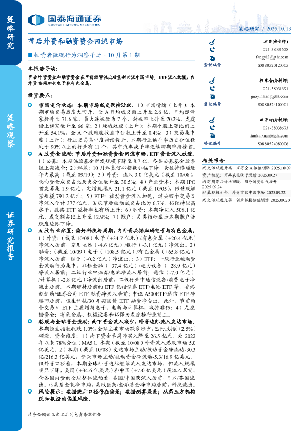 【国泰海通证券】【202510】节后外资和融资资金回流市场-32页
