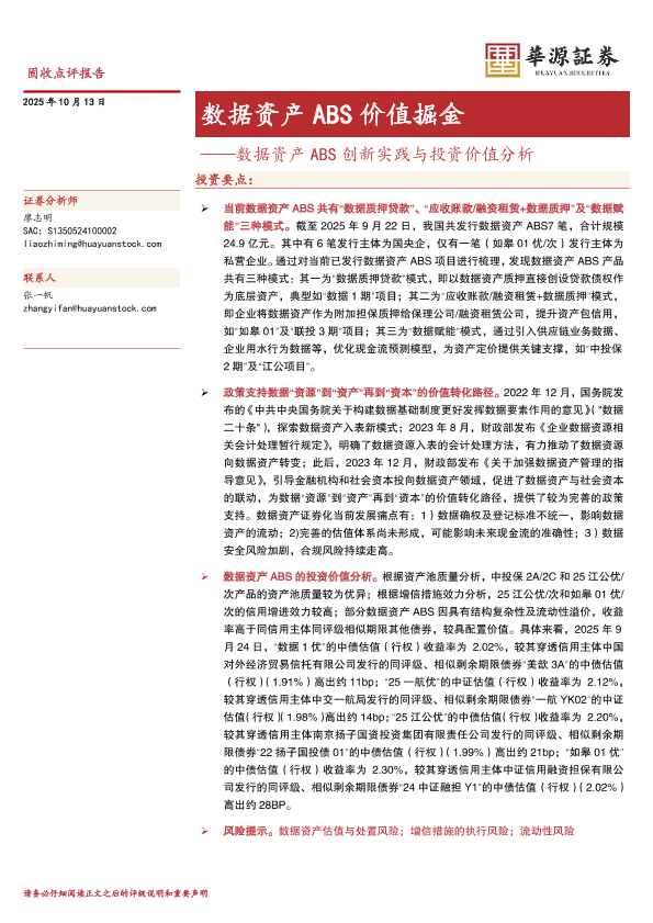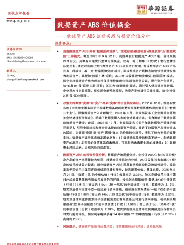 【华源证券】【202510】数据资产 ABS价值掘金——数据资产 ABS创新实践与投资价值分析-11页
