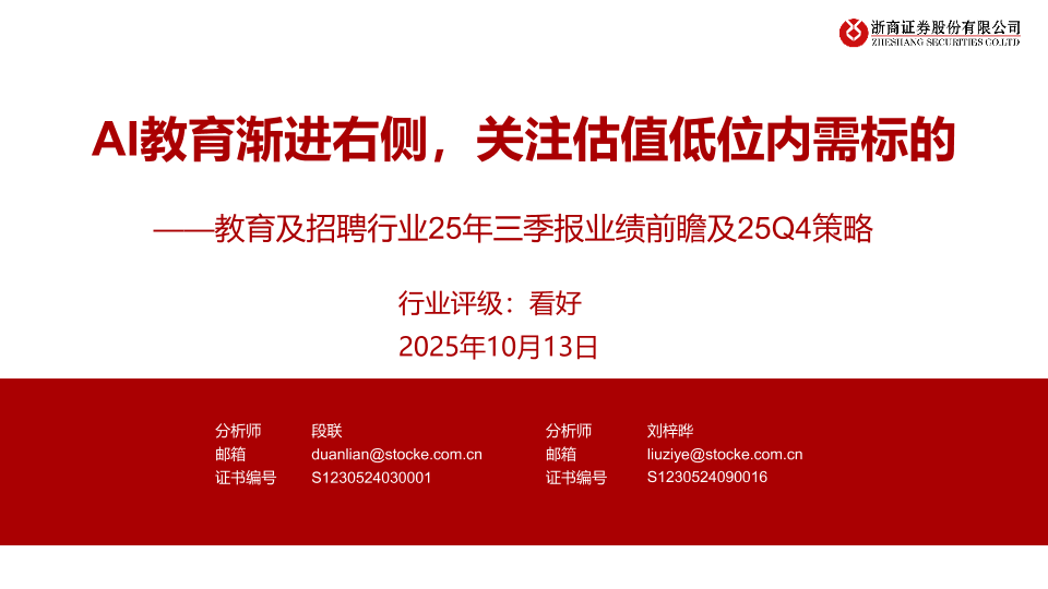 【浙商证券】【202510】AI教育渐进右侧,关注估值低位内需标的-29页