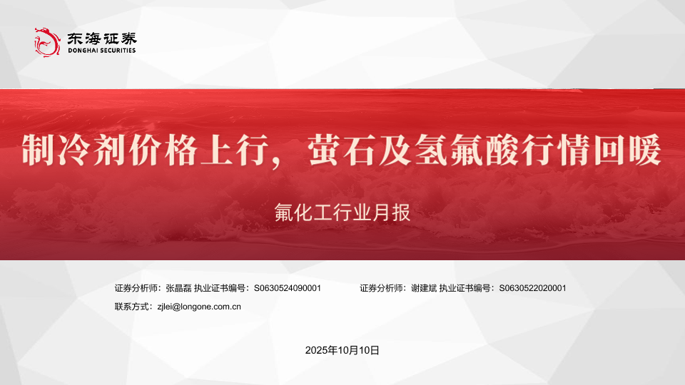 【东海证券】【202510】氟化工行业月报:制冷剂价格上行,萤石及氢氟酸行情回暖-24页