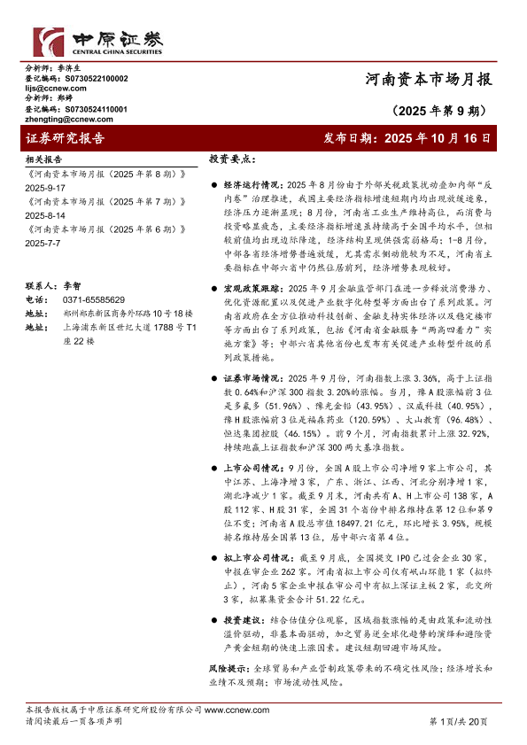 【中原证券】【202510】河南资本市场月报(2025年第9期)-20页