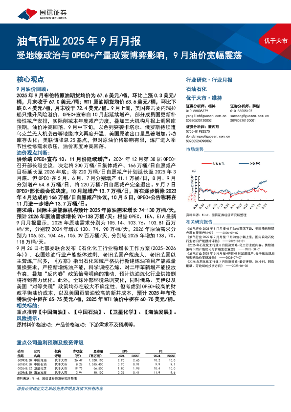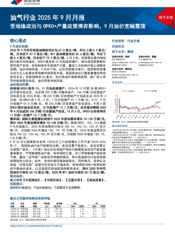 【国信证券】【202509】油气行业2025年9月月报:受地缘政治与OPEC+产量政策博弈影响,9月油价宽幅震荡-25页