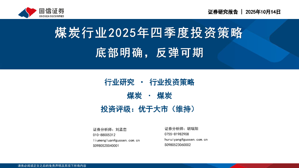 【国信证券】【202510】煤炭行业2025年四季度投资策略:底部明确,反弹可期-35页