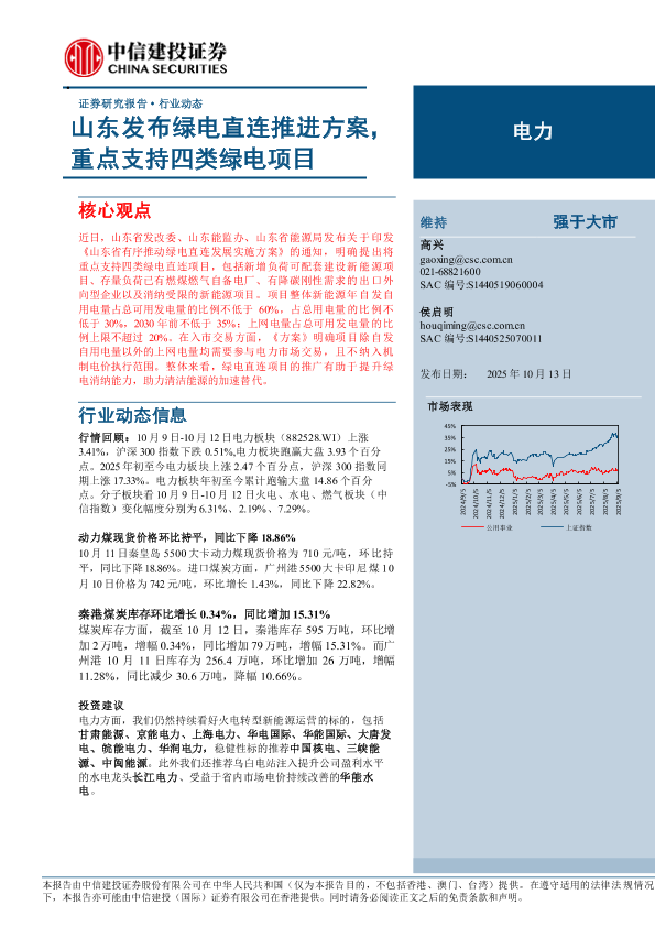 【中信建投证券】【202510】电力行业动态:山东发布绿电直连推进方案,重点支持四类绿电项目-14页