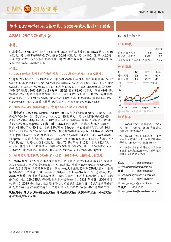 【海通证券】【202510】ASML+25Q3跟踪报告:单季EUV签单同环比高增长,2026年收入指引好于预期-12页