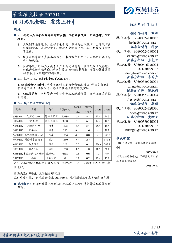 【东吴证券】【202510】策略深度报告:10月港股金股,震荡上行中-15页