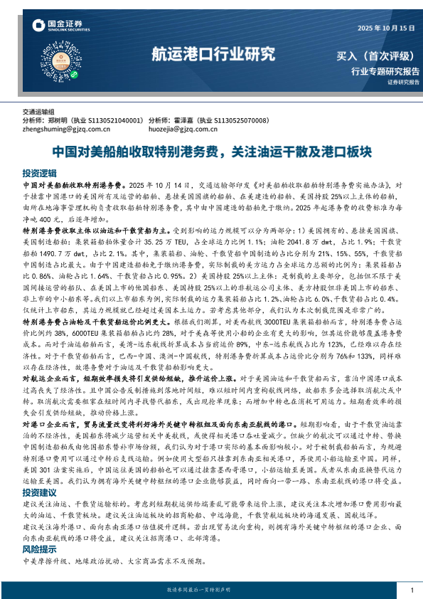 【国金证券】【202510】中国对美船舶收取特别港务费,关注油运干散及港口板块-12页