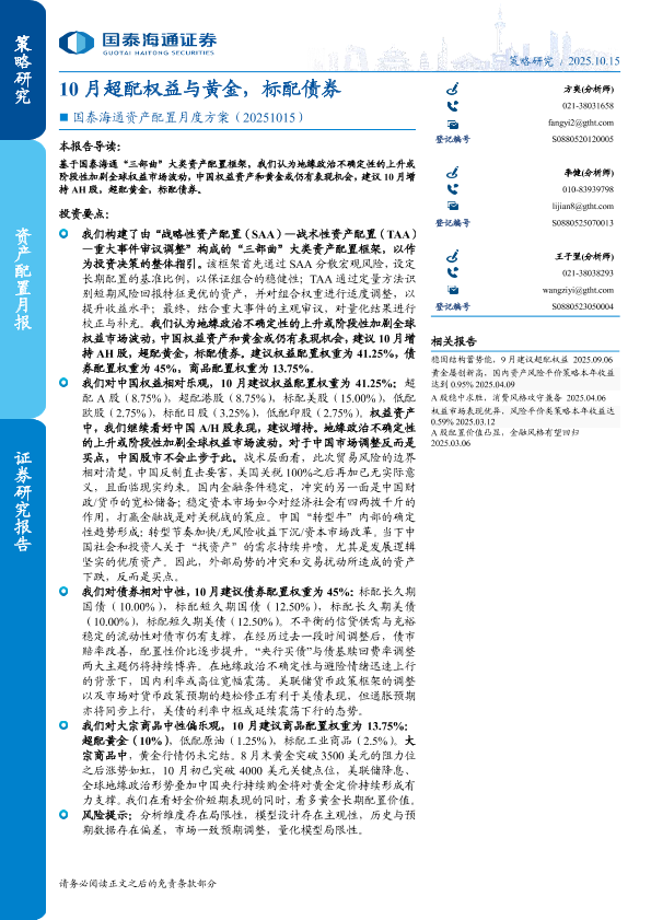 【国泰海通】【202510】10月超配权益与黄金,标配债券-19页