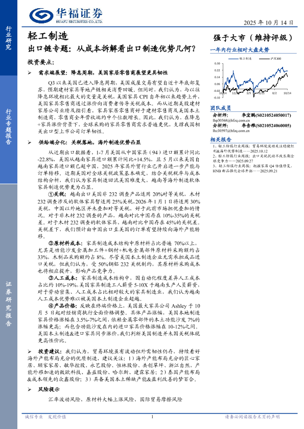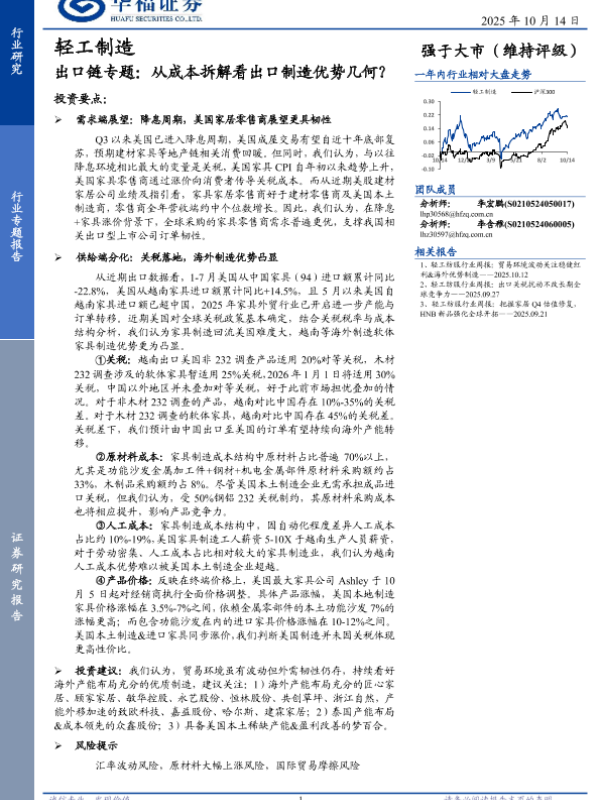 【华福证券】【202510】轻工制造行业专题报告:出口链专题,从成本拆解看出口制造优势几何?-13页