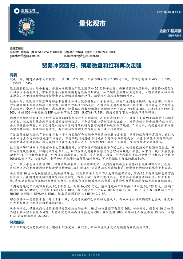 【国金证券】【202510】贸易冲突回归,预期微盘和红利再次走强-12页