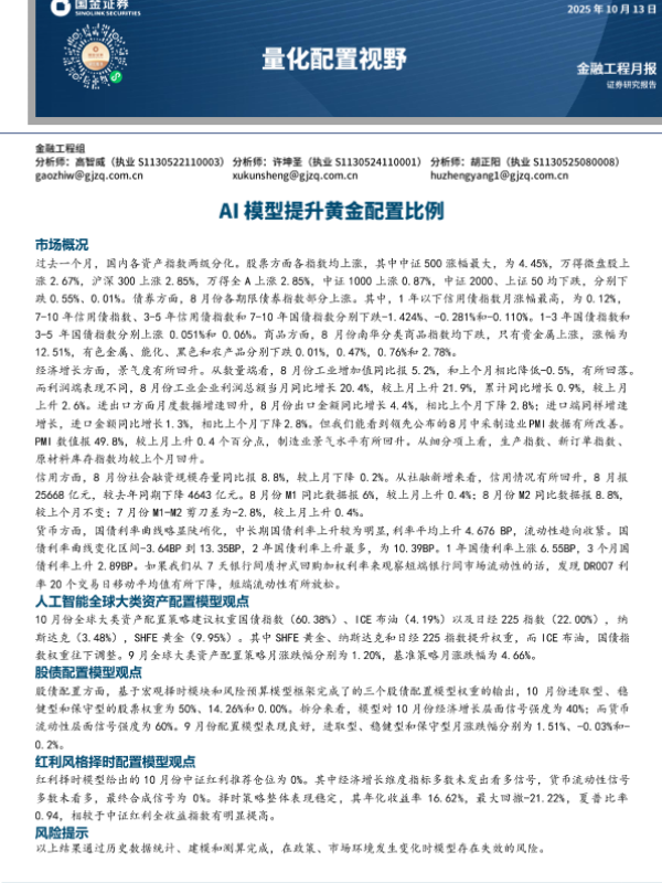 【国金证券】【202509】AI模型提升黄金配置比例-251013-国金证券-11页